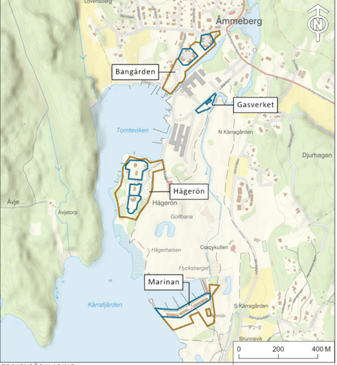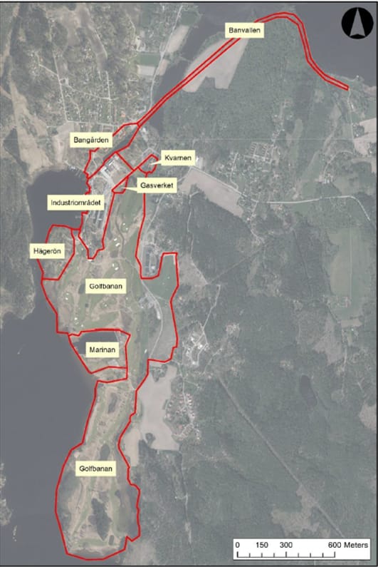 Den efterföljande riskbedömningen som blev klar 2018 visar att finns behov av avhjälpande åtgärder vid de platser inom undersökningsområdet där det finns bostäder. Dessa områden går under benämningarna Bangården, Gasverket, Hägerön och Marinan. Se karta nedan.